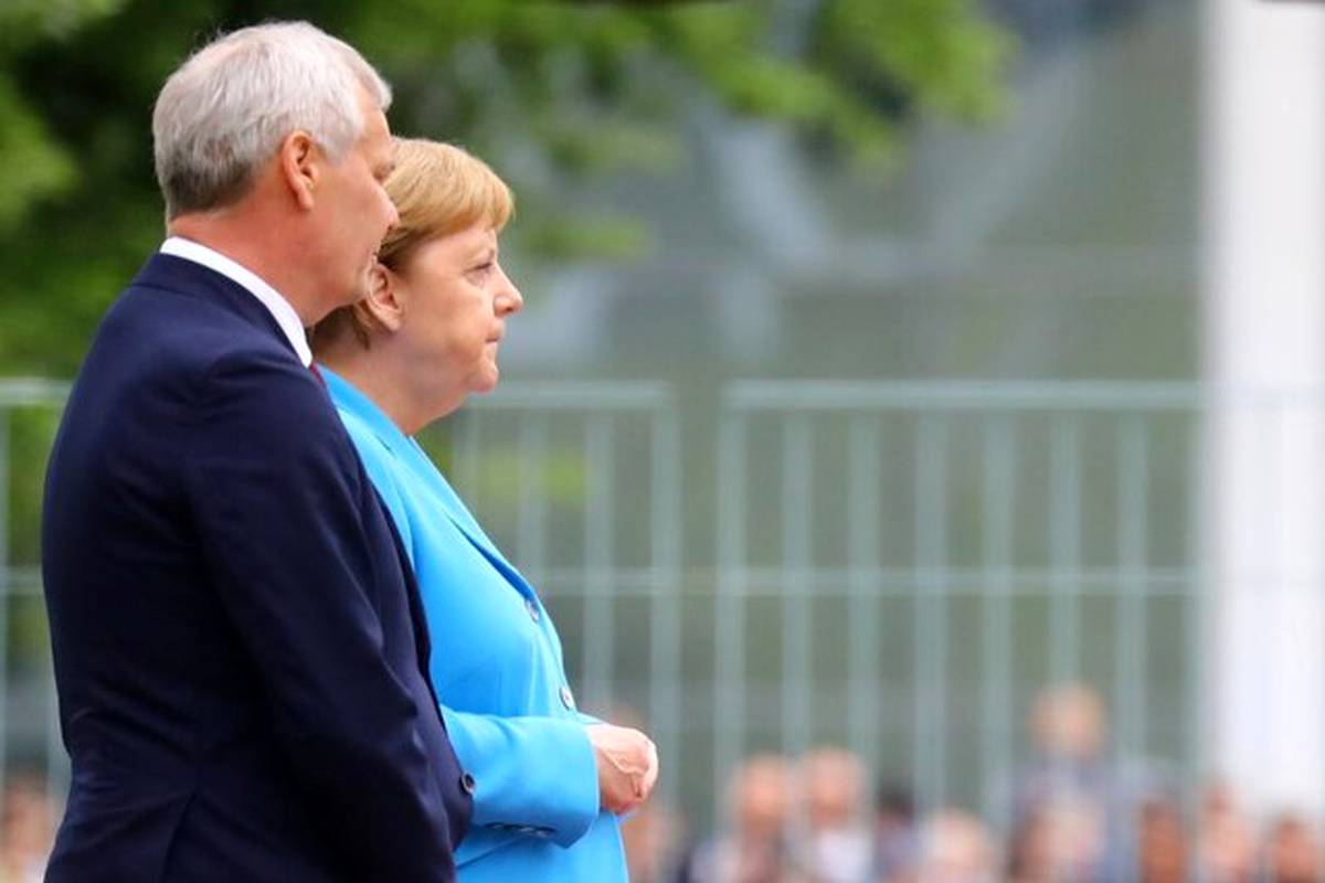 تصاویر تلویزیون رویترز نشان میدهد، آنگلا مرکل، صدراعظم آلمان در مراسم استقبال از آنتی رینه، نخستوزیر فنلاند دچار لرزش بدن شده است. مرکل که در کنار این مقام ایستاده بود، شاهد مراسم نظامی بود.